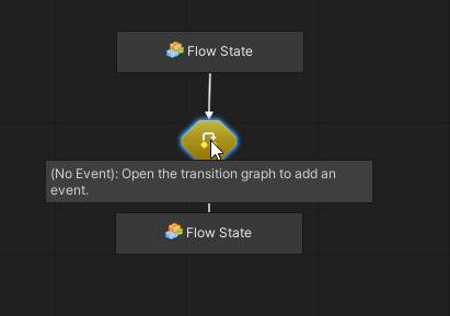 위의 예에서는 새로운 상태로 전환할 수 없는 문제점을 가지고 있다. Event가 언제 발동해야 하는지를 지정하지 않았기 때문에 결고 상태가 전환할 수 없는 것이다. 따라서 목적 상태와 트랜지션 둘 다 흐리게 표시되고 있다. 트랜지션 유닛을 더블 클릭하거나 Edit Graph 버튼을 클릭하면 트랜지션 그래프가 나타난다. 기본적으로 다음과 같이 구성된다.