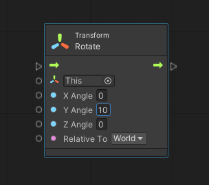 기본적으로 유닛(Units)의 디폴트 타겟은 This이기 때문에 This 유닛을 별도로 명시해서 사용할 필요가 없다. 예를 들어, 이 두 그래프는 동일하다(주> 두 번째 이미지의 Y Angle 값이 0이 아니라 10)