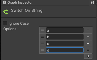 string(문자열) 또는 숫자(number)를 switch로 사용하려면, 그래프 인스펙터에 분기 옵션을 추가해야한다.