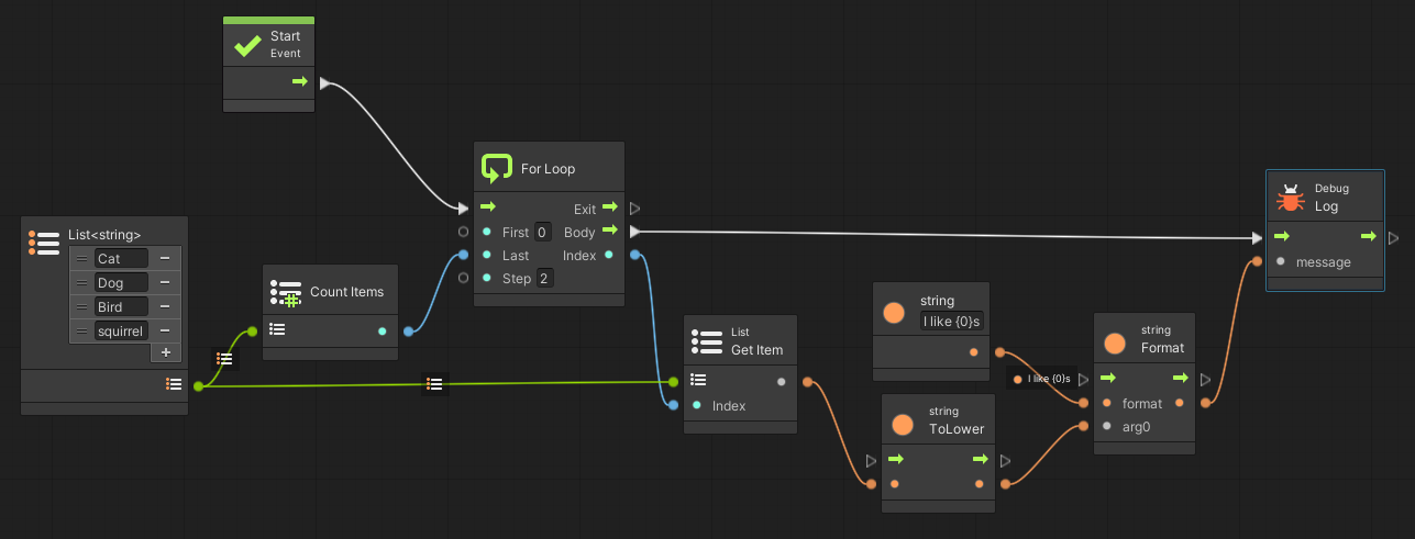 예를 들어, 콘솔에 "I like {animal}s"라고 출력한다는 면에서 For Each Loop의 예시와 매우 유사하다.
