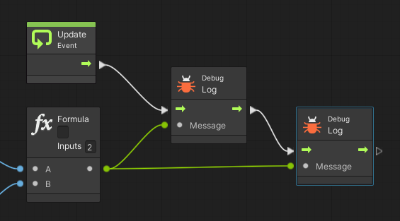 예를 들어, 아래와 같이 그래프를 작성하면, Debug.Log가 두 개인데 이를 위해 Formula를 두번 계산하게 된다.