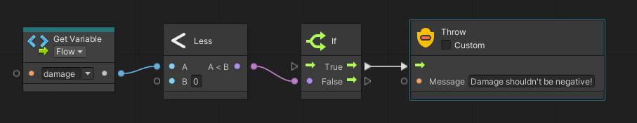 Throw 유닛은 흐름을 멈추게 하는 예외(Exception)를 발생 시킨다. 이 예외를 Try Catch로 처리한다.