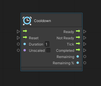 Duration 포트는 Cooldown이 다시 완료될 때까지 걸리는 시간을 의미한다. Unscaled가 체크되면 시간 척도(time scale)를 무시하게 된다.