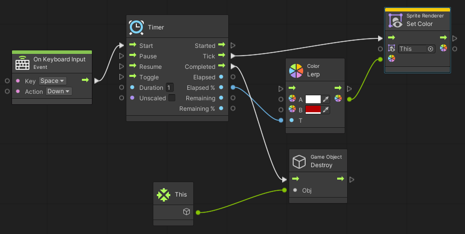 아래 예시는 단순한 자동파괴 시스템인데, 파괴되기 전까지 점진적으로 스프라이트가 붉게 변해간다.
