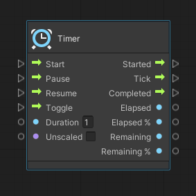 Timer는 Start 입력이 트리거 될 때 시작되며, 이후에 Started 출력을 트리거한다.