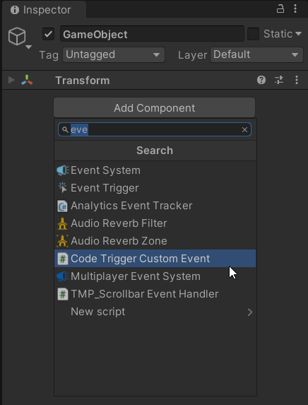 - 프로그래밍을 통해(C# 스크립트 내에) 간단한 custom event를 트리거하는 스크립트를 생성한다.