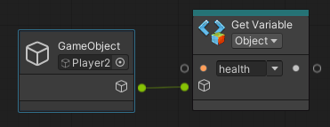 예를 들어 Get Variable 유닛은 플레이어2 오브젝트에 있는 health 변수의 값을 얻는다.