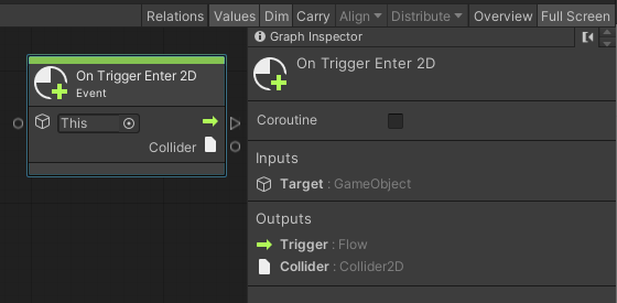 * On Trigger Enter 2D : 충돌에 대한 물리적 처리 없이 오브젝트의 충돌 자체만을 체크한다. 즉, 아래의 Collider 출력은 출돌한 대상에 대한 정보가 제공된다.